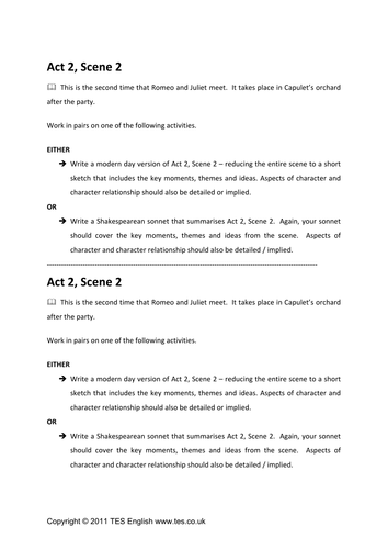 Romeo And Juliet Re Writing Act 2 Scene 2 Teaching Resources