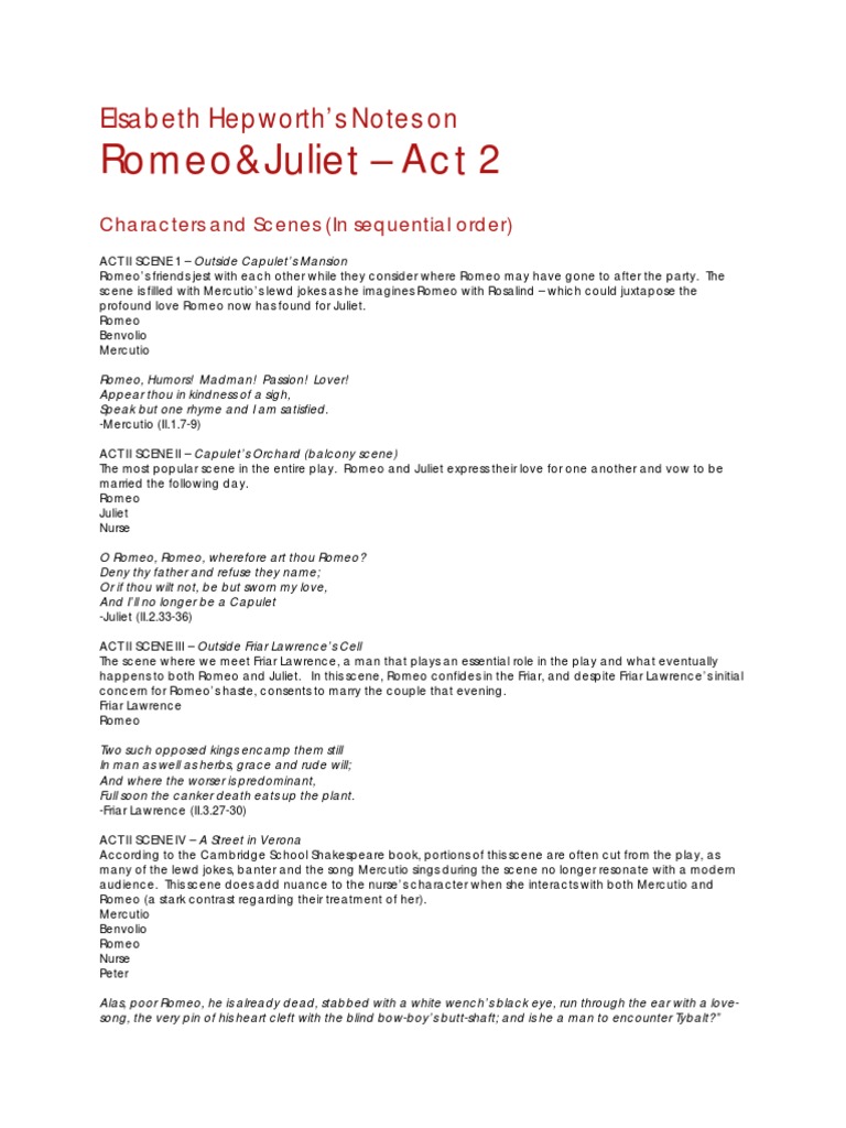 That fair for which love groand for and would die With tender Juliet matchd is now not fair. Up to 24 cash back Romeo and Juliet --Act 2 Scene II Original Text Modern Text ROMEO returns ROMEO returns. Romeo and Juliet Act 2 Summary Notes Mrs.